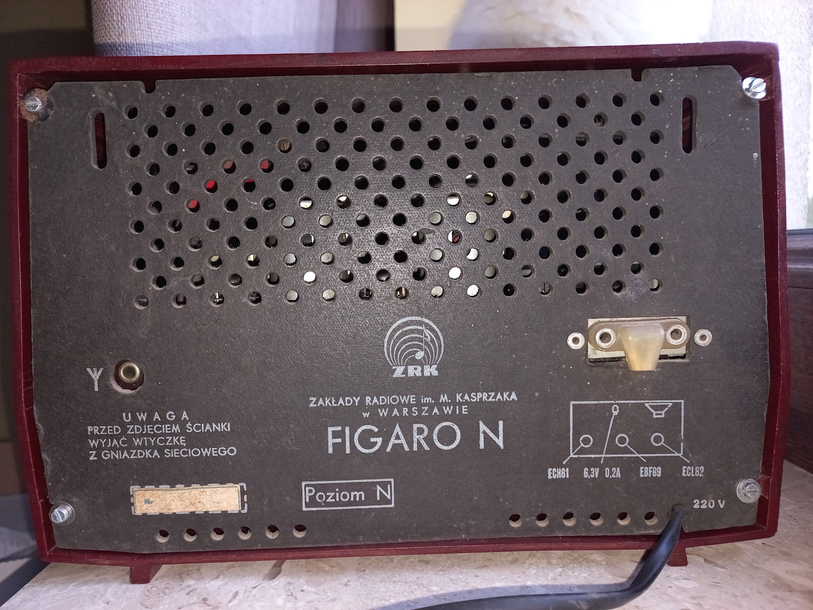 Mam w swojej kolekcji trzy radyjka Figaro z fabryki im. Marcina Kasprzaka w Warszawie. Gdy miałem jeden egzemplarz, nie interesowałem się jaką mam wersję. Teraz gdy jest ich kilka, chciałem to sprawdzić. Jednak jak się okazuje, to nie jest takie proste. Odbiorniki te były produkowane na rynek krajowy oraz zagraniczny. O jego wersji świadczył wygląd frontu, skala, opis na tylnej ściance i przede wszystkim wnętrze. Czasami odbiornik wyglądał jak Figaro, a był jednak Barbarą lub Rozyną (mam taką wersję). Od frontu ramka była w dwóch wersjach kratki głośnikowej. Skala była z magicznym oczkiem lub bez. Na skali było logo Diory lub Unitry . Podziałka częstotliwości była różna, w zależności gdzie odbiornik eksportowano. Różnice układowe też były znaczne. Wersje zasilania na 220V i wersje bateryjne.